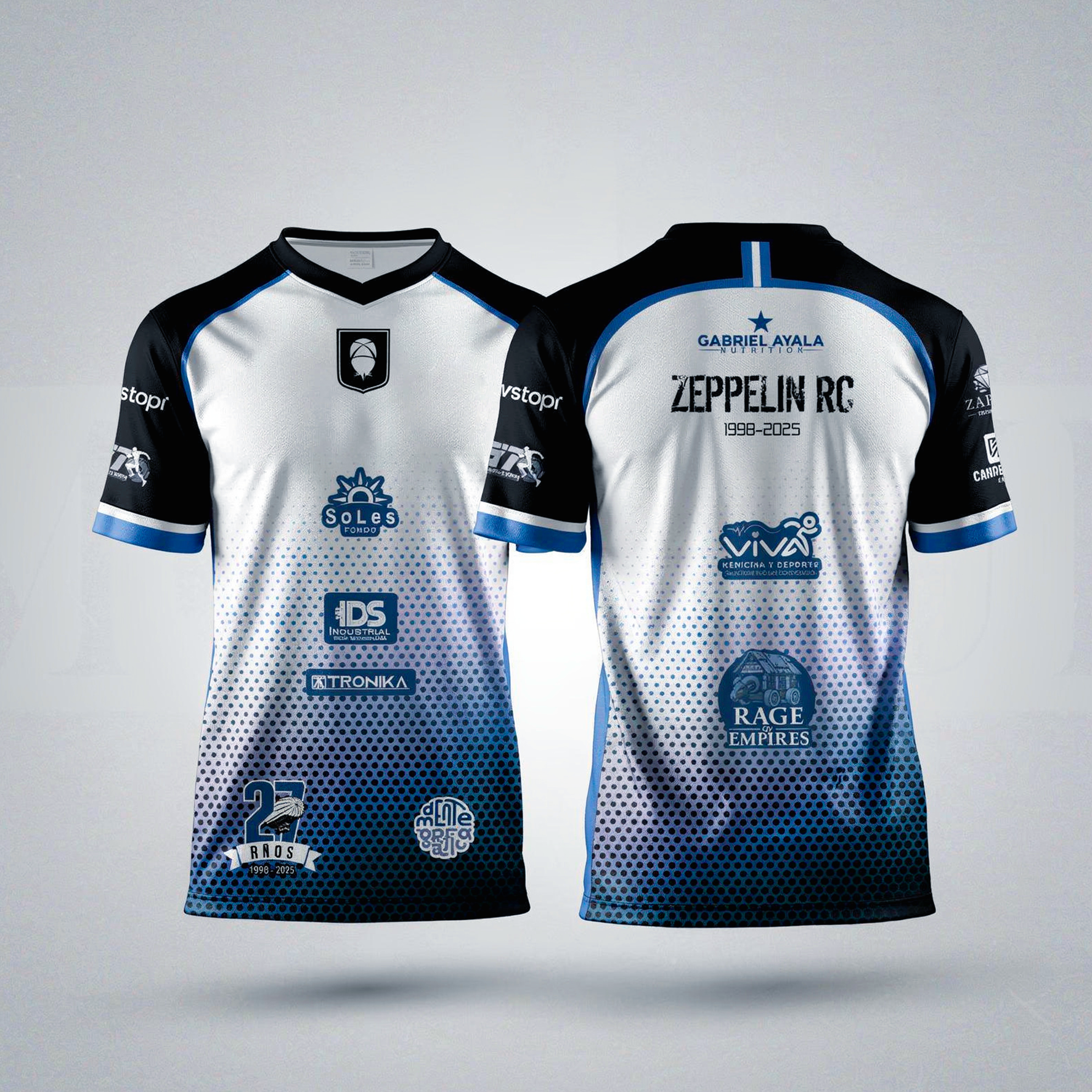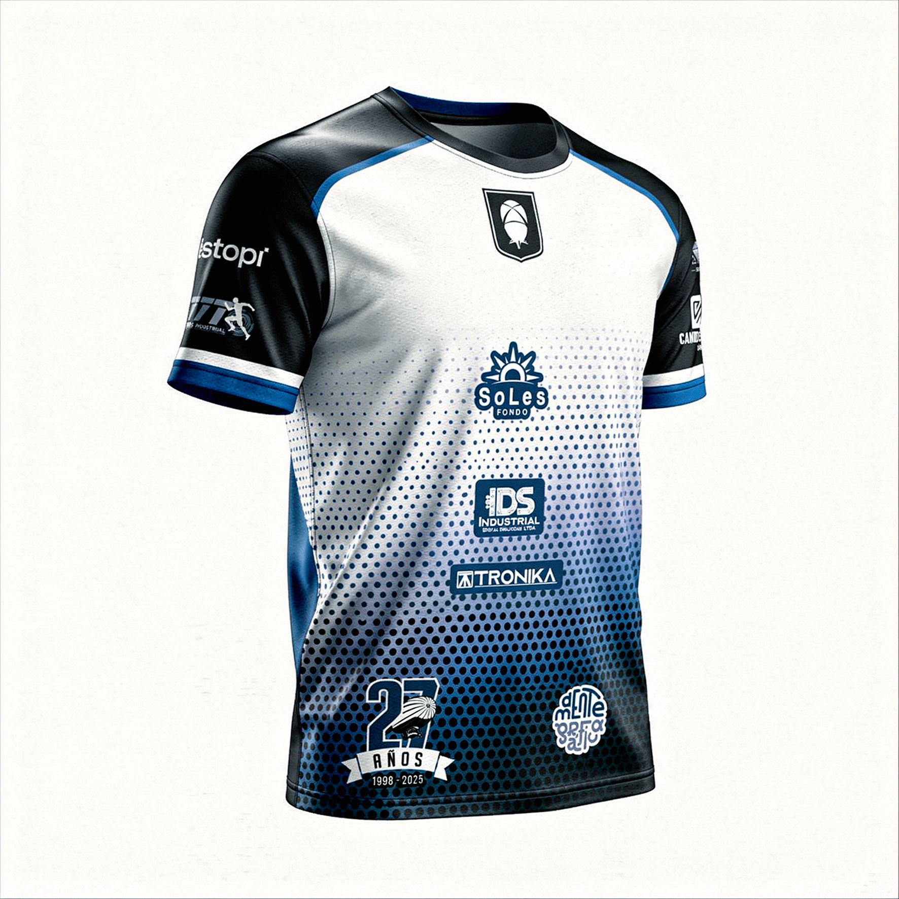T-shirt de entrenamiento con estampados del equipo con colores blaco, negro y azul.